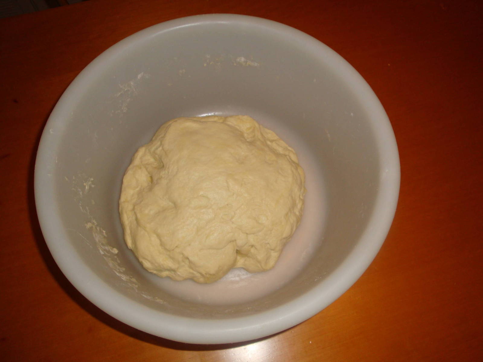 1. Punem faina in lighenas si in mijloc apa, otetul, uleiul si sarea 3. Formam mingiute Test 2 2. Preparam aluatul